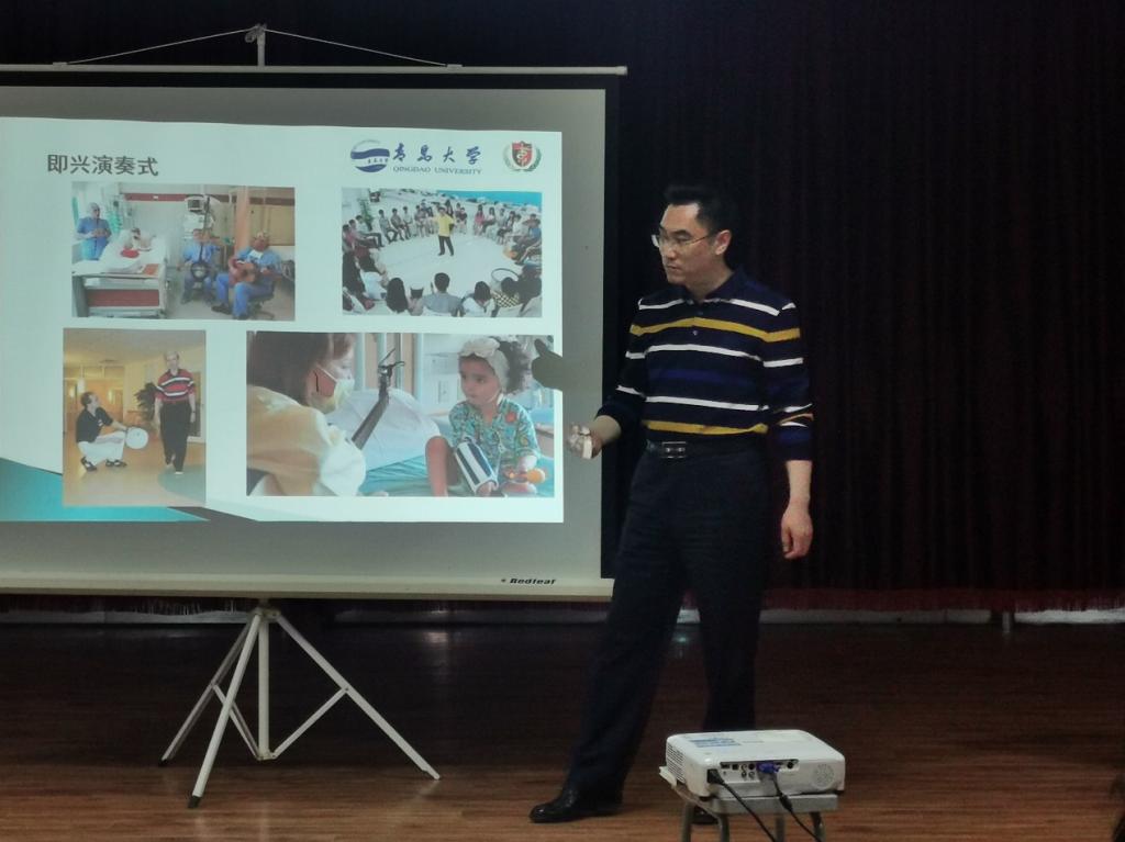 5月23日下午,艺术与设计学院在市北校区音乐表演排练厅举办音乐治疗研究学术讲座,邀请青岛大学维可迈康复医学研究院音乐康复研究室主任、知名MER音乐创伤治疗督导师、治疗师张明老师做题为“多学科合作模式下音乐治疗的临床应用与发展”的专题讲座。