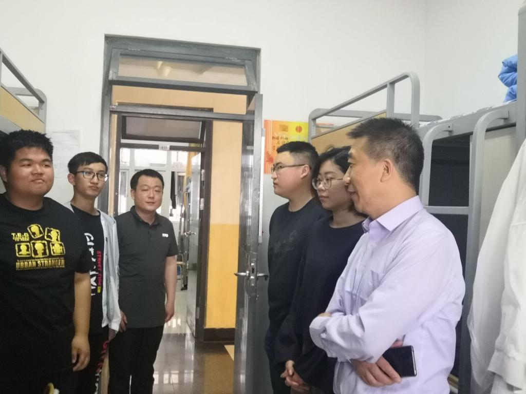 5月23日,理学院党总支副书记刘聘、分团委书记李晓辉、辅导员张晓双走访宿舍了解学生情况。