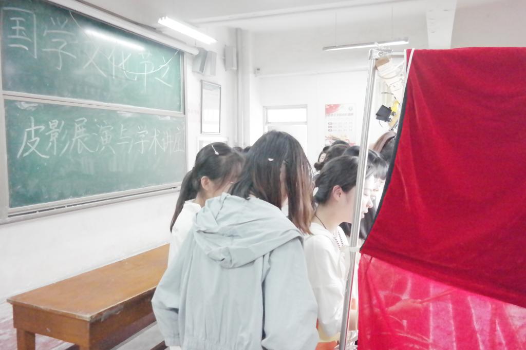 刘尚仪从定义、七大要素、三大地域性流派、艺术特色、形成与发展过程以及其现状五方面对皮影戏进行详细讲解。接着,两位皮影艺术家现场为大家表演了皮影戏《崂山道士》及《掩耳盗铃》。皮影小人或漫步或打斗,薄薄几张皮影道具,在艺术家娴熟的摆动中栩栩如生、惟妙惟肖。在座师生无一不聚精会神,纷纷被精彩绝伦的表演所吸引。表演结束后,感兴趣的同学纷纷上前亲手尝试操纵皮影,近距离感受非物质文化遗产的魅力。