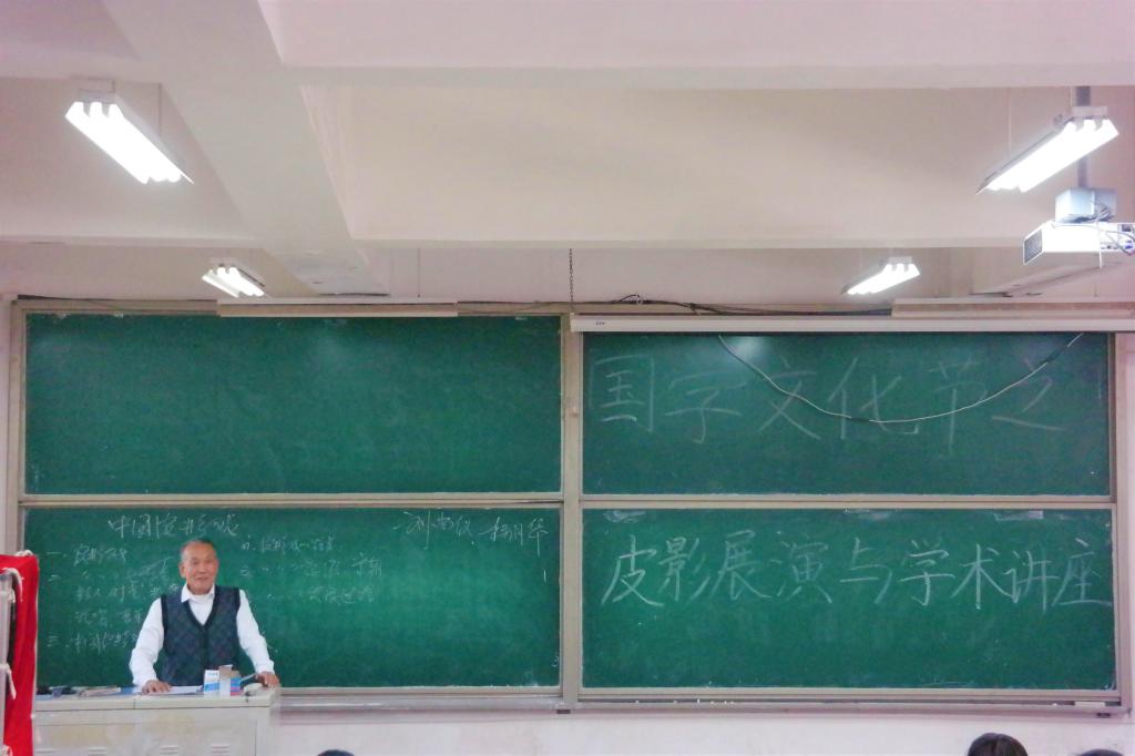 为响应青岛西海岸新区2019年“文化和自然遗产日”非遗进校园,传承国学文化,丰富校园生活,5月28日上午,人文与外国语学院在长江路校区二教332举办皮影展演与艺术讲座。讲座由汉语言文学专业张成福教授主持,皮影艺术家刘尚仪、杨月华老人应邀出席。
