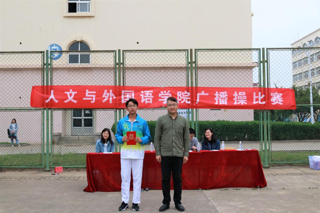 为丰富校园文化生活,增强学生身体素质,5月30日中午,人文与外国语学院学生会在长江路校区篮球场举办2019年广播操比赛。人文与外国语学院党总支副书记王振,分团委书记、学工办主任马松,辅导员陈刚、辛雪梅、贾舒文,学生会主席盛琳媛担任评委,18级全体学生参加。