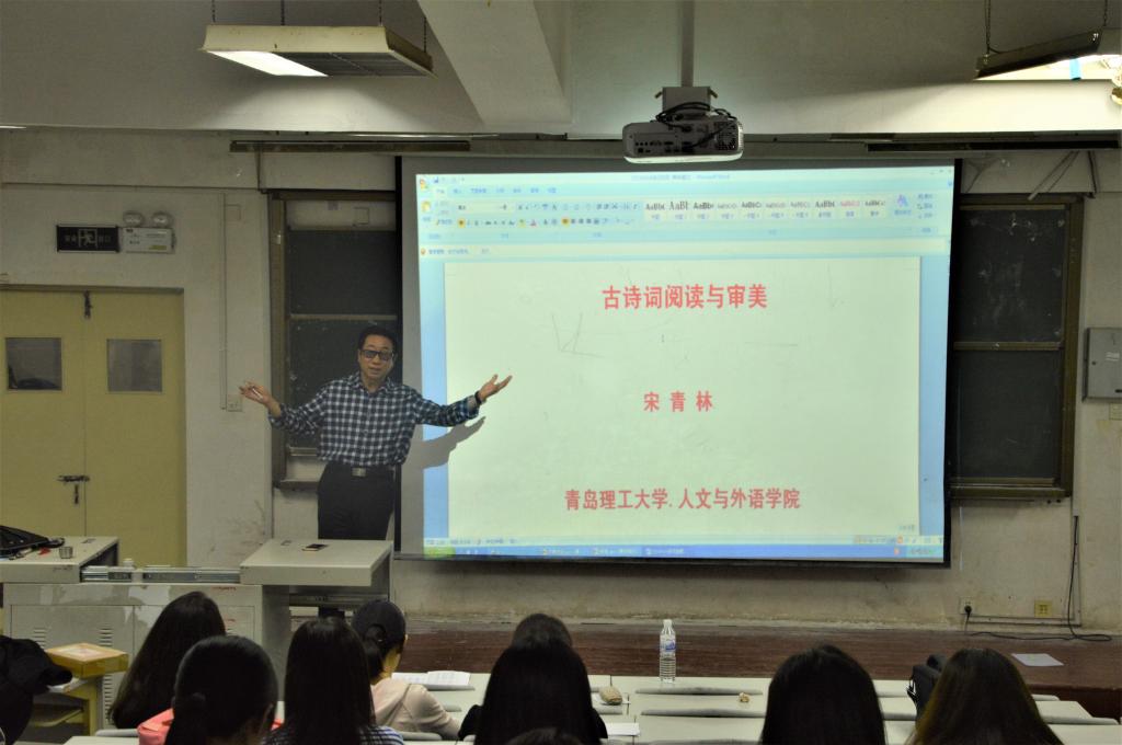 为深入挖掘古典诗词意蕴,提高学生传统文学修养。6月4日晚,人文与外国语学院在长江路校区阶教202举办“古典诗词阅读与审美”讲座,人文与外国语学院副教授、青岛经济技术开发区原作家协会副主席宋青林担任主讲人。