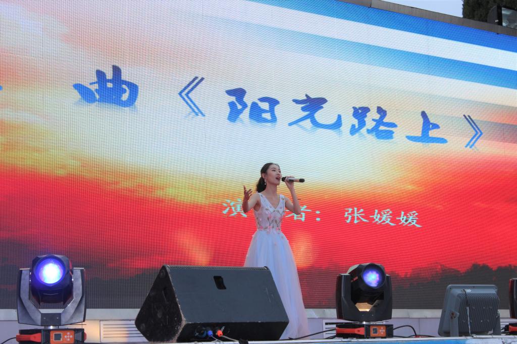 艺术与设计学院学子带来的舞蹈《芳华》动人心弦,以优美的舞姿感叹芳华似花。一首《阳光路上》又唱出了新中国成立以来中国的飞速发展,更唱出了我国科学发展道路不可阻挡的气势。在声如潮水的营歌合唱中,演出落下帷幕。