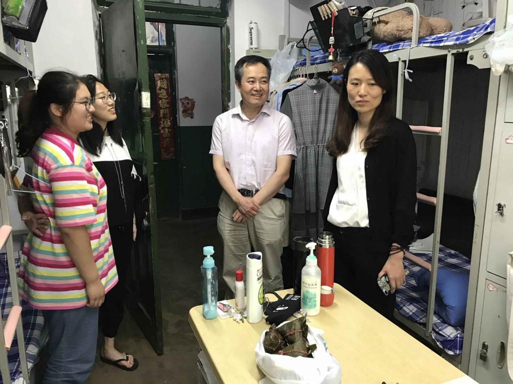 6月6日正值端午节到来之际,环境与市政工程学院党总支副书记邵长飞、学工办主任兼分团委书记张恬和辅导员李卓,走访学生宿舍看望建档立卡和少数民族学生,为他们送去粽子和节日慰问。
