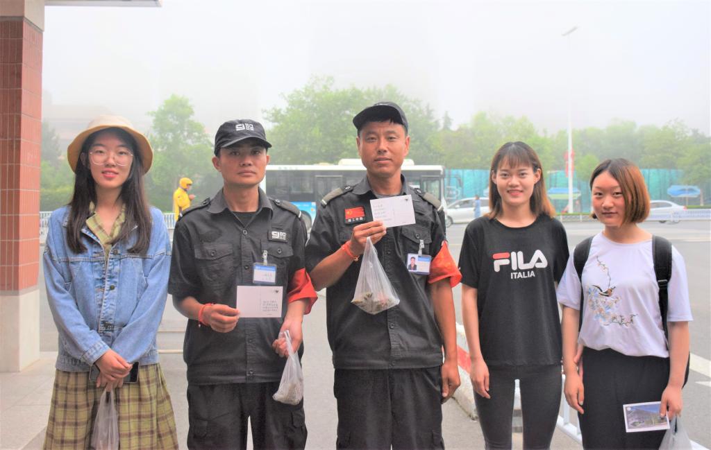 活动前,志愿者们准备充分,提前购买了粽子,香囊等物品,精心拍摄了以长江路校区为背景的照片,并制作成了贺卡,每一张贺卡上都写满了感谢和祝福。一切准备就绪后,志愿者们分组行动,在志愿者所到之处,工作人员们正如往常坚守在各自的岗位上,他们恪守职责,默默付出,维护着校园安全,热乎乎的粽子满载着学生们的敬意,一声声的问候传递着来自内心深处的感谢,瞬间温暖了在场的每一位工作人员。