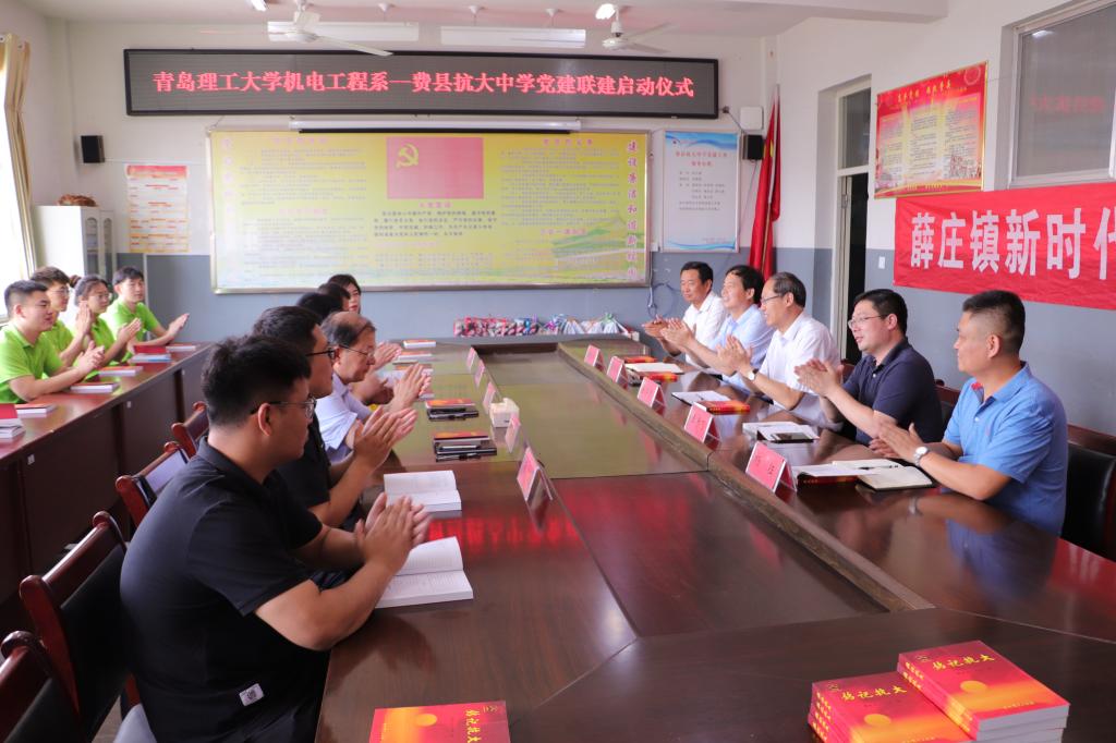 为加强对校区学生党员的培养和教育,引导学生党员深入基层、服务社会,充分发挥高校和社会的联动效应,创新高校“三全育人”模式,6月5日,我校临沂校区机电工程系与薛庄镇抗大中学党建联建启动仪式在薛庄镇抗大中学举行。校区管理委员会副主任刘清晨、学校机械与汽车工程学院副院长、校区机电工程系党总支书记、主任孟广耀,校区合作发展办公室主任王跃华,薛庄镇党委书记暴学清、镇党委委员、副镇长杨征(挂职)、镇组织部长王彦飞,抗大中学校长李德昌及相关负责同志参加活动。