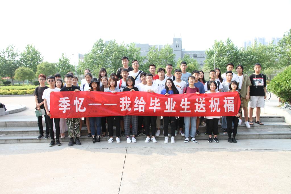 艳阳高照下,鸟语花香间,拉起“季忆——我给毕业生送祝福”的红色条幅,竖起粘贴着毕业生往昔美好瞬间的照片墙,同学们将美好的祝愿写到便签纸,贴在照片墙上,为即将毕业的学长学姐们送上满满的祝福:“未来的路还很长,青春还未散场,祝你们像风筝一样,为梦想而飞翔,祝将要离开母校的你们前程似锦、一路顺风!”“年轻的时代是生命的早晨,是一年四季的春天,这个季节很精彩,处处是生机、是希望。即将大学毕业,愿你在这最开心的季节,展翅飞翔,直冲云霄。”···句句祝福,字字深情,仿佛把时间拉回了2016级刚入校的时候,球场上的奋身跳跃,运动会上的挥汗如雨,舞台上的尽情歌唱,这些难忘的瞬间定格在一张张的相片里,也定格在这个青春阳光的校园里。