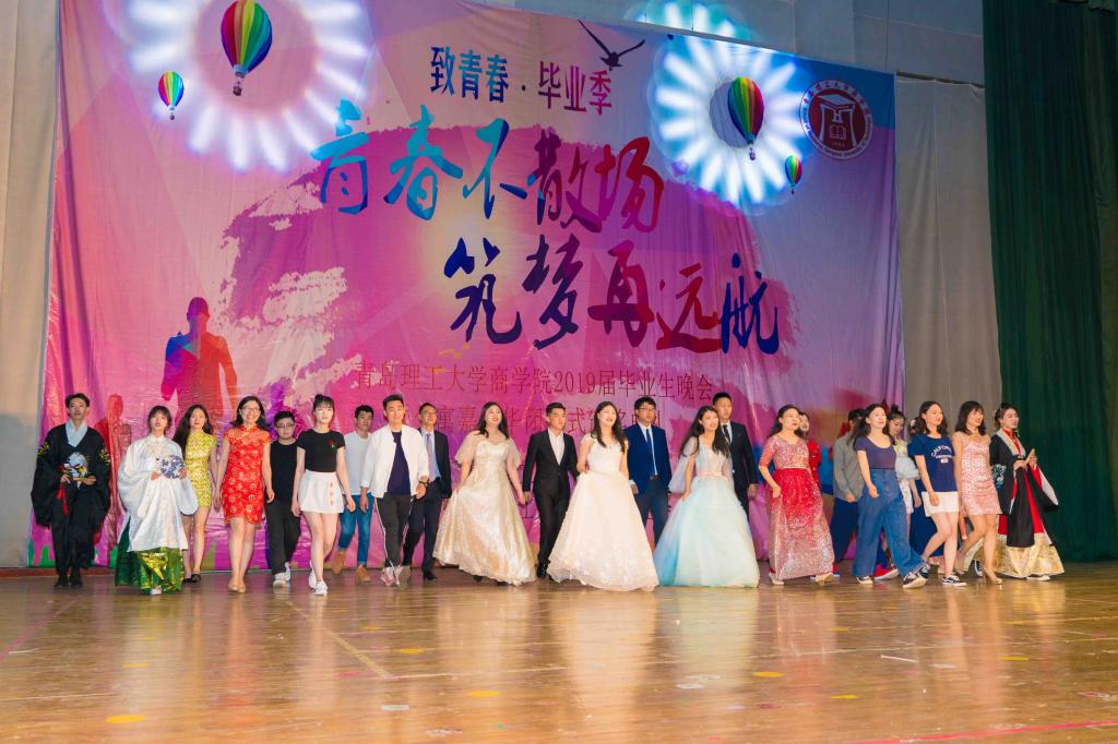 本次晚会以“青春不散场,筑梦再远航”为主题。首先,大家共同欣赏了商学院师生为纪念五四运动100周年录制的快闪视频。在精彩的视频中,老师和同学们共同唱响《我和我的祖国》,一齐歌颂和赞美伟大祖国。随后,王曙光上台致辞。王曙光从学海无涯、学无止境,真诚做人、踏实做事,不忘初心、心怀梦想三个方面出发,表达了对毕业生的美好祝愿和对在校生的殷切期望,祝福毕业生步入社会后能永久奋斗,不负青春、不负韶华,为中华民族伟大复兴贡献自己的力量。