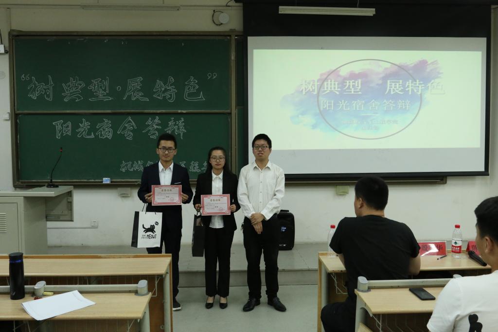 为增强学生宿舍的凝聚力、创造力,营造健康、文明的生活氛围,机械与汽车工程学院于6月12日下午在主教学楼B135举行了优秀宿舍答辩大会,辅导员殷宗华、陈锦子、李龙以及部分大一、大二同学参与本次活动。