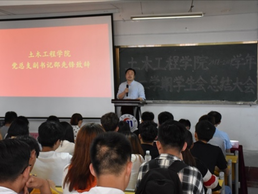 6月12日,土木工程学院2018-2019学年第二学期学生会总结大会在一教三阶南举行。学院党总支副书记邵先锋,学生工作办公室主任、分团委书记王中帅,全体辅导员及学生会全体成员参加本次大会。