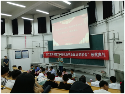 邵长飞代表学院感谢张工教育对学院人才培养的支持。同时对即将走出校门环境学子的成长成才和突出成绩表示热烈祝贺。指出在新岗位、新征途,有美丽的风景也有新的挑战,希望大家不忘初心,逐梦远航。欢迎大家常回青理看看。