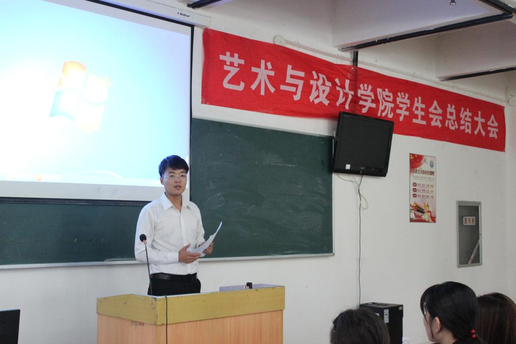 最后,王俊富总结发言。一是表示感谢,对一直辛勤付出的学生会全体成员表示衷心的感谢,特别是学生会主席团对本届学生会工作的默默付出;二是向获得“艺院之星”的同学及“优秀部门”表示祝贺,成绩的取得是同学们共同努力的结果;三是分享几点感悟与大家共勉,学院学生会是在学院党委领导、团委指导下,依靠全院学生开展工作的自治组织。希望大家加强团队协作,拧成一股绳,努力创新,敢于突破,多多开展有创意、接地气、能传播正能量的活动;要有牺牲和奉献精神,处处起到模范表率作用,找准自己定位,实现自己的价值;要牢记学习是第一要务,打铁还需自身硬,只有把自己学习成绩搞好了才能有更多的精力去服务同学,相信学生会的经历会在大家人生中留下浓墨重彩的一笔。