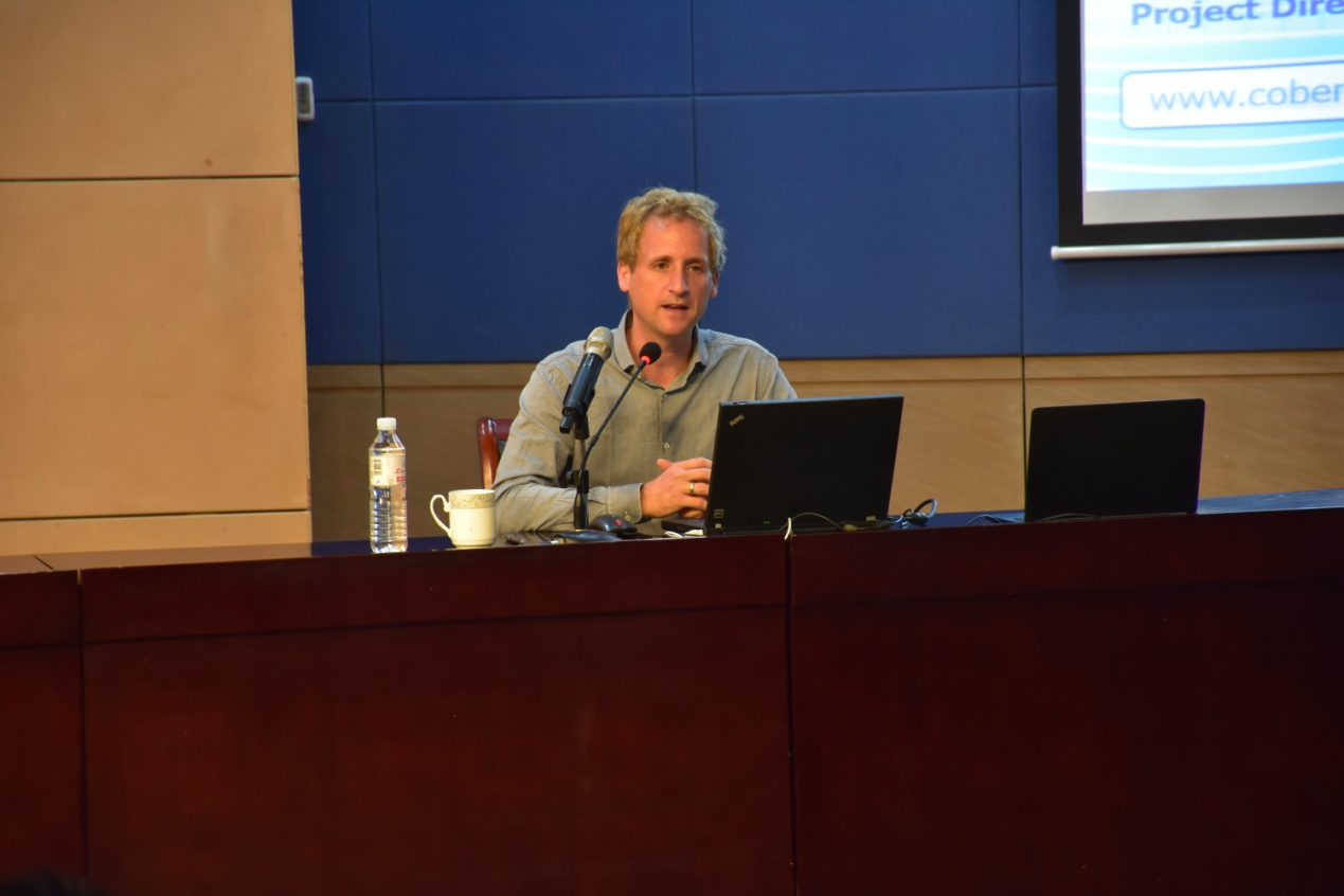 6月18日上午,德国波茨坦高等可持续研究所(IASS)能源转型研究部部长Sebastian Helgenberger博士应邀在学术报告厅做了题为“可再生能源应用与社会经济发展”的专题讲座,环境与市政工程学院的相关教授、研究生和本科生200多人到会聆听讲座。