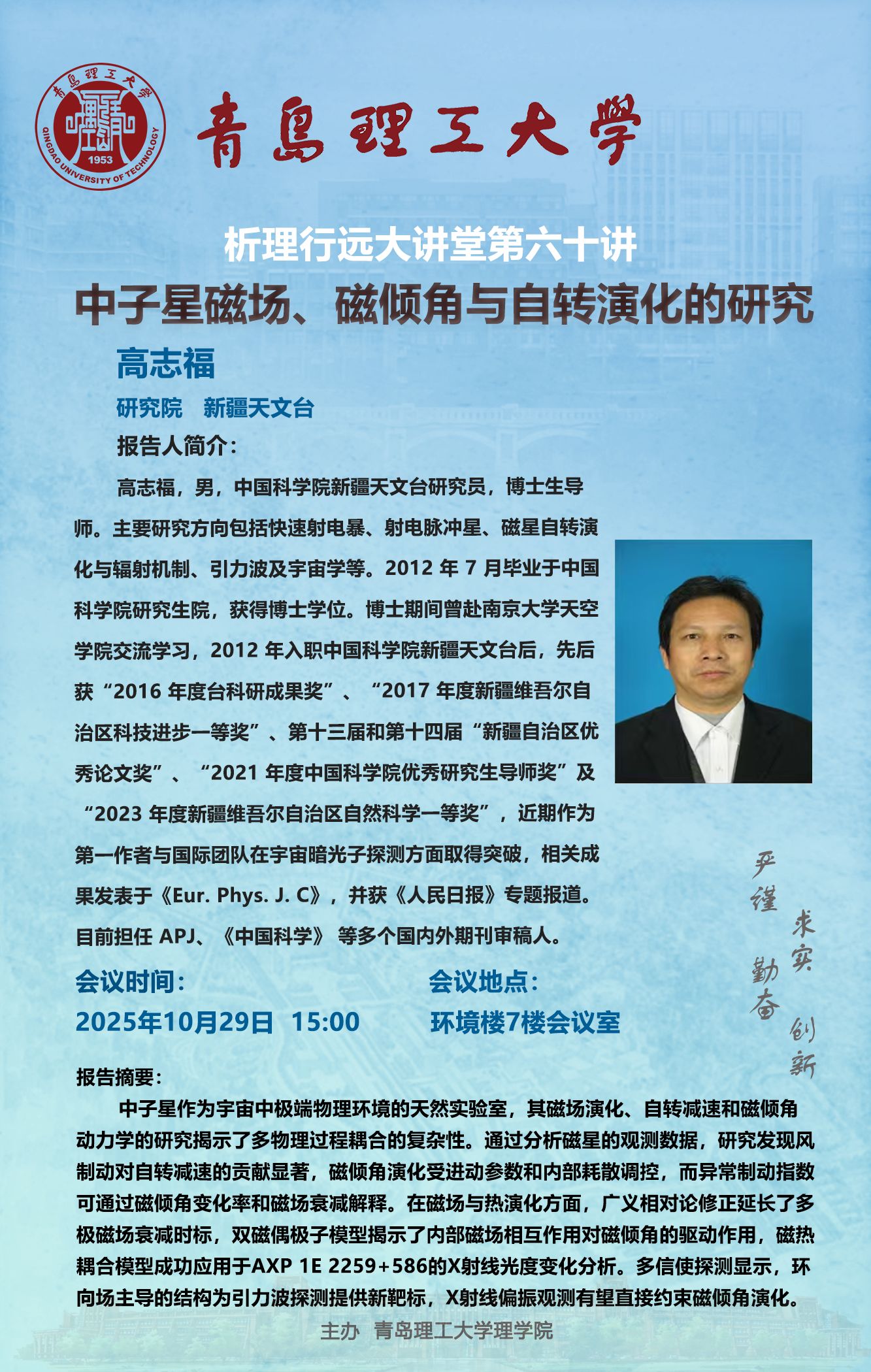 学术预告|中子星磁场、磁倾角与自转演化的研究