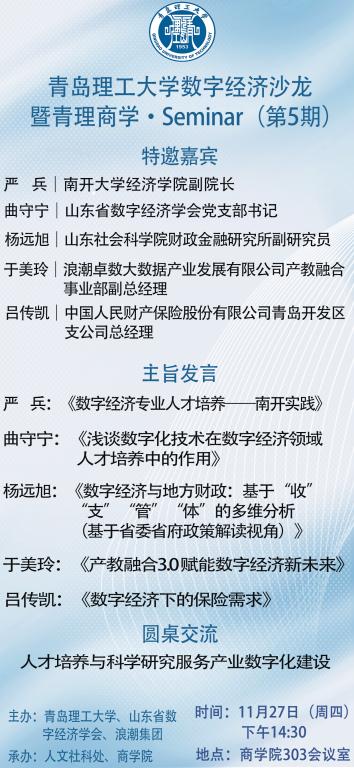学术预告|青岛理工大学数字经济沙龙暨青理商学·Seminar